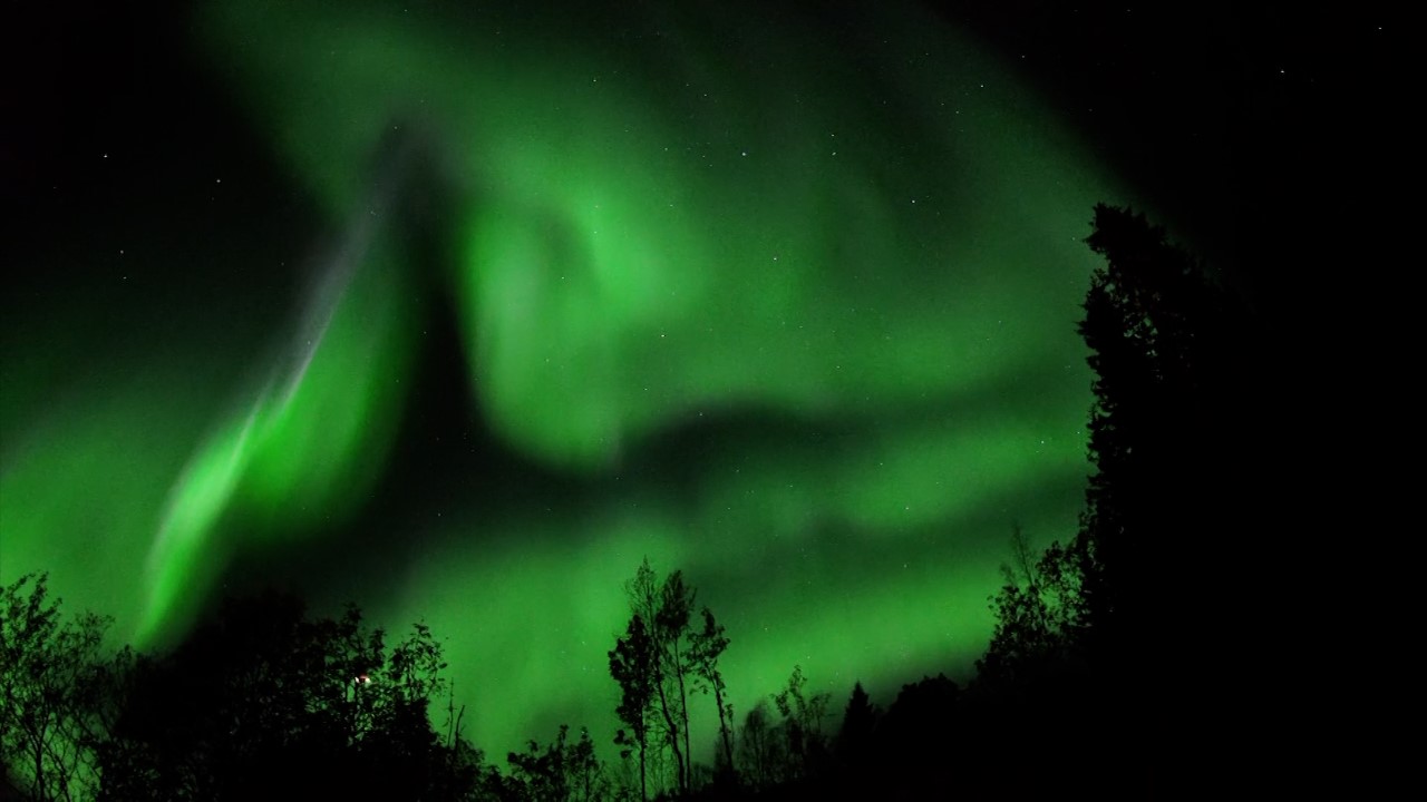 Det er svart desember i Folkeparken, den lille skogen som ligger et steinkast unna Norges arktiske universitetsmuseum i Tromsø. Mørket passer bra – vi er på nordlysjakt. Det gjelder å komme seg mest mulig unna elektrisk lys fra byen og derfor følger vi en liten sti inn i skogen, finner ei lysning blant tettvokst bjørk- og granskog og vender nesa oppover. Vi har hellet med oss i dag, for der er det. Lyset.