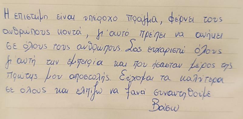 Throughout the preparation, apart from the practical issues, such as the fact that in Greece we don't have clothes for such weather conditions, the most difficult thing I had to deal with was how to explain to my friends and family what this trip means to me. Then I thought of the simplest question, think about what your biggest dream is and that in a little while you're going to experience it, and then you'll know how I feel.