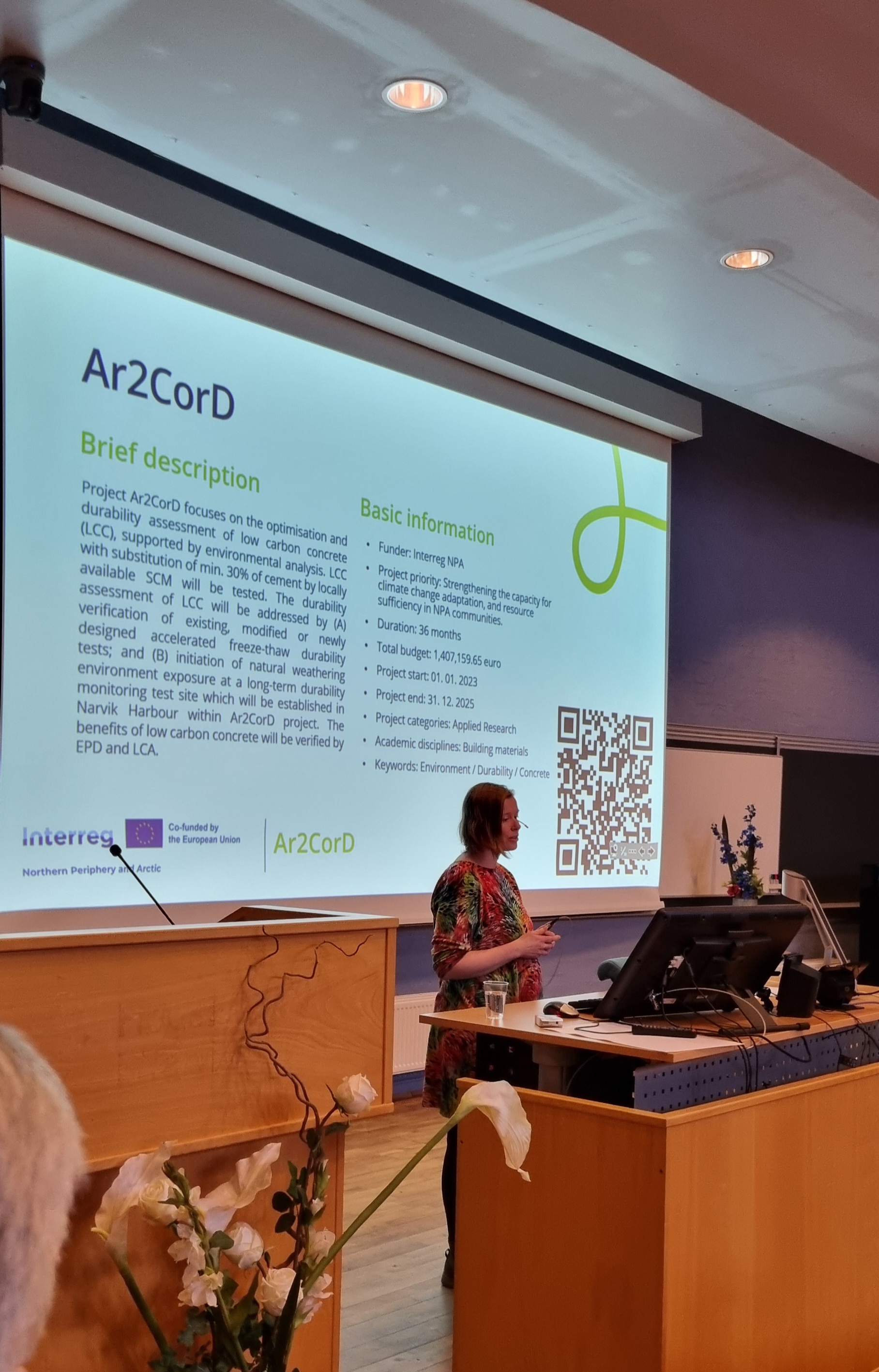 At the Concrete Professionals Day conference, held at the arctic University of Norway (UiT) narvik campus, Iveta Novakova, the project leader of Ar2CorD and Rekik Derso, a Ph.D. candidate in the project delivered a brief presentation introducing the Ar2CorD project to attendees.