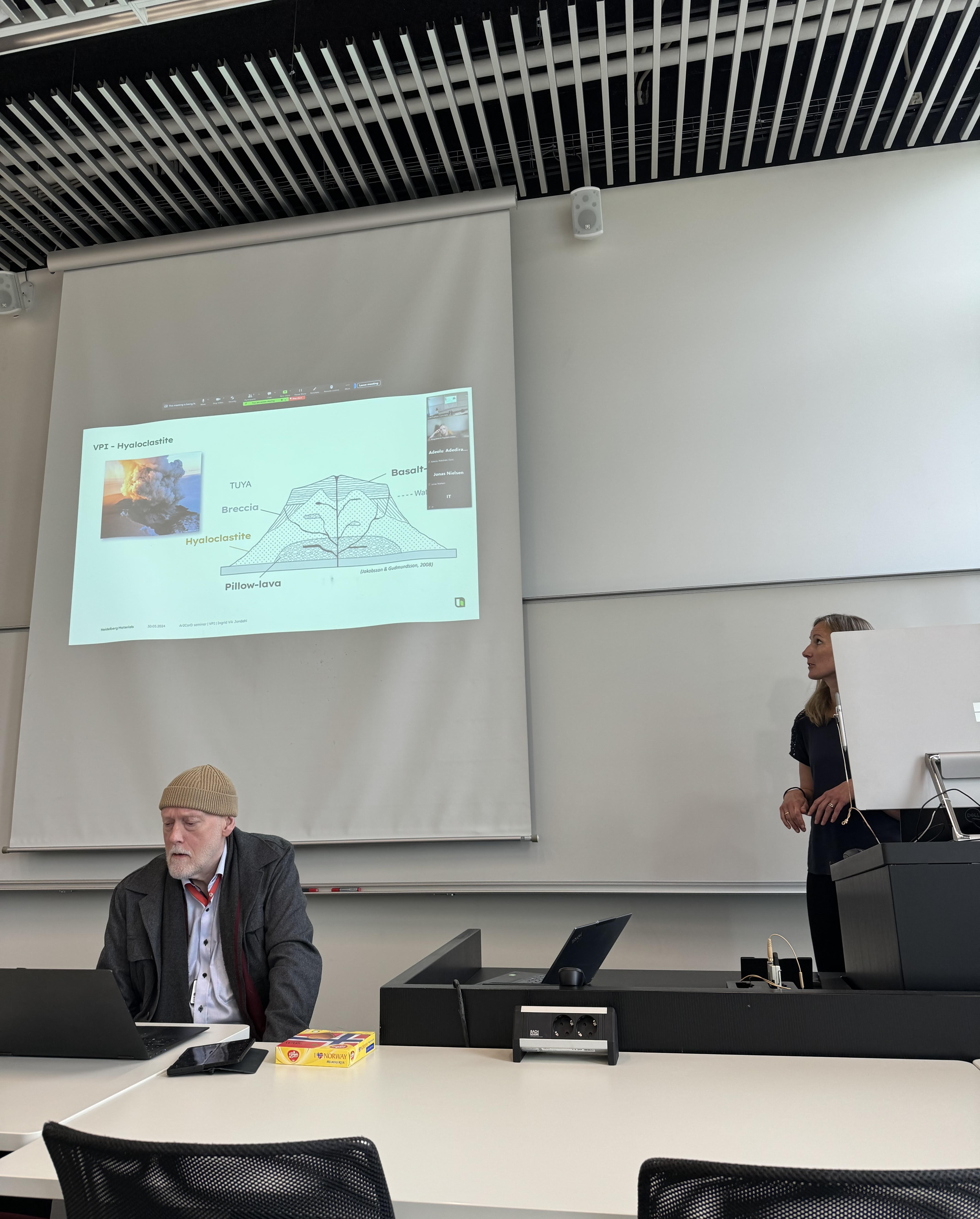 | After the seminar was over, there was a discussion on how the seminar went and what things to do in the remaining project years. There was also a discussion on the biggest challenges in making lower carbon footprint concrete in the north/arctic exposed to frost, and how to insure its frost resistance. | ![]() |